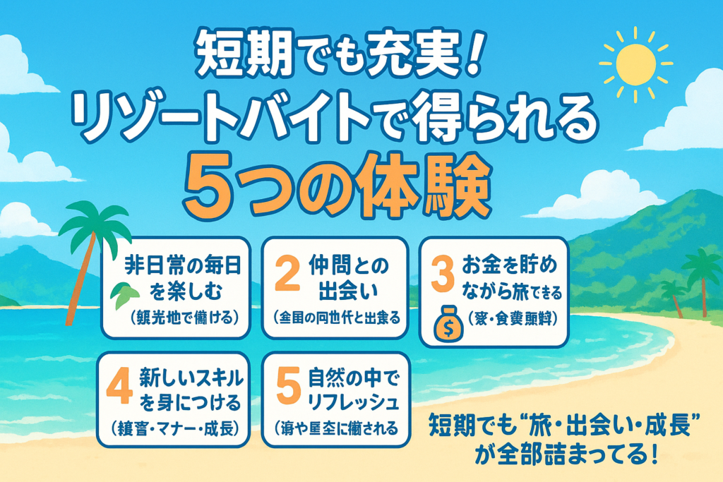 リゾートバイトは、たとえ1〜2週間でも得られるものが多い働き方です。