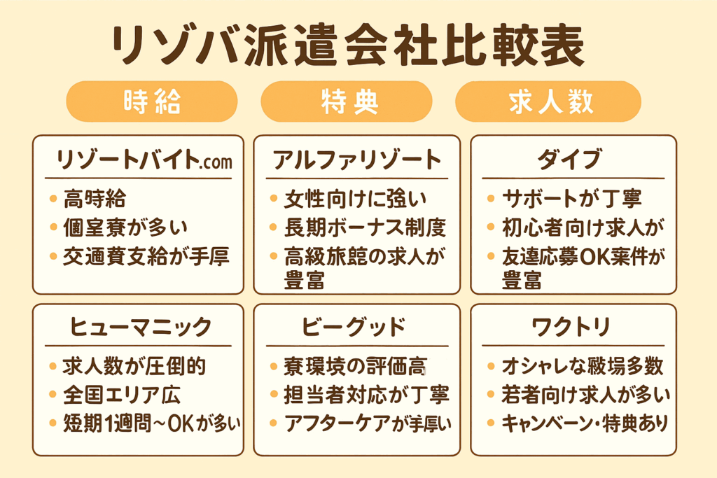 ◆比較するリゾバ派遣会社(主要6社)