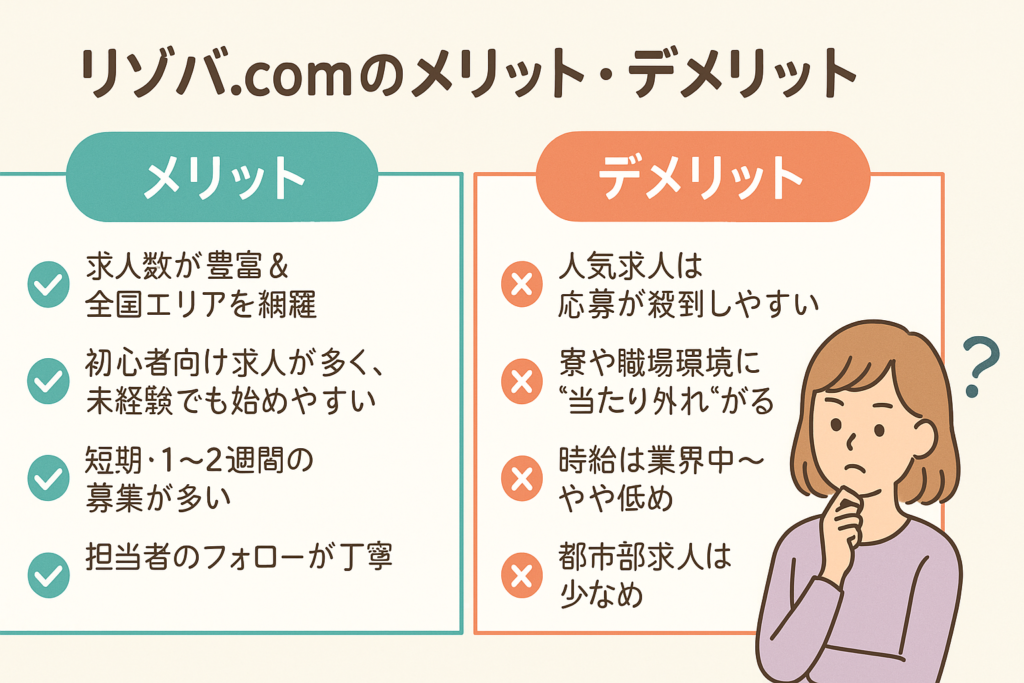メリットが多い一方、リゾバ.comならではの「気になる点」も存在します。