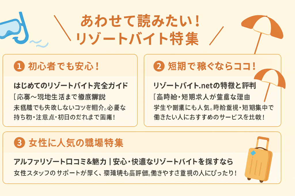 👉 [はじめてのリゾートバイト完全ガイド|応募〜現地生活まで徹底解説]